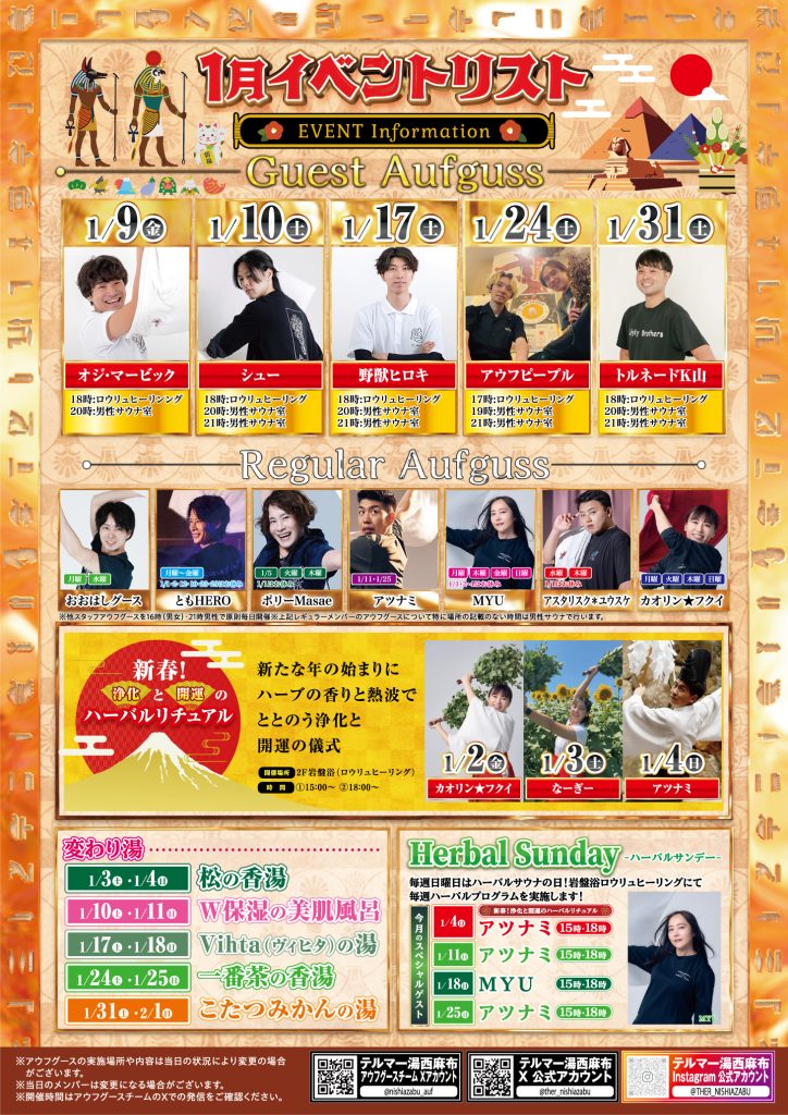 【12月(クリスマス)も豪華アウフギーサーによるイベント開催!年越しは煩悩消し去る百八熱波で良い新年を迎えましょう!】 -